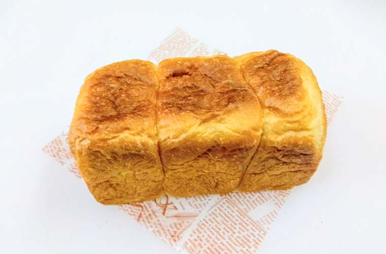 食パンで人気No.1は、中までしっとりとした『プレミアム角食』。バターや練乳、生クリームなど、乳脂肪分の高い素材をたっぷりと使用し、甘みのある味わいに仕上げたリッチな一品です。黄金色の焼き色と、デニッシュのような皮の質感がその証拠。焼かずにそのまま食べたい人はコレに決まりです。