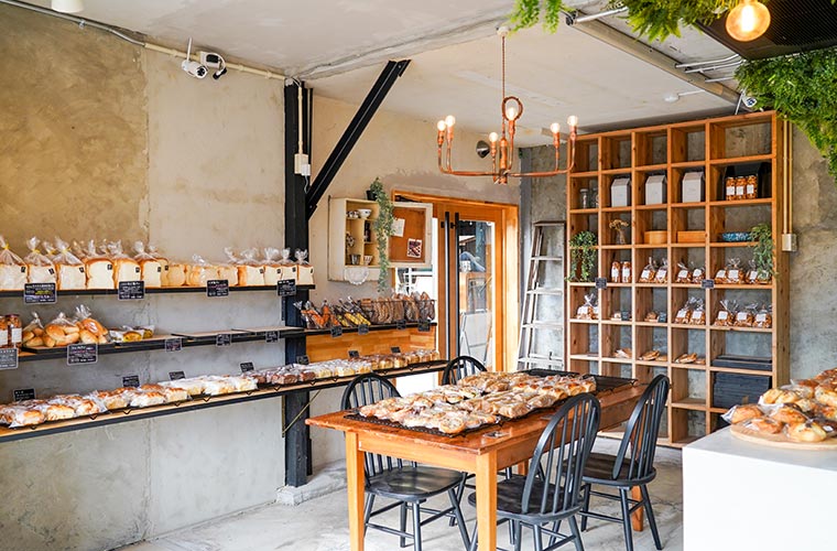 グレーを基調にしたスタイリッシュな店内には、手のひらサイズの小ぶりな食パンが約30種類ずらり。毎日11:30ごろには、すべてのパンが出そろうため、豊富なラインアップの中から選びたい人は、この時間帯を目安に訪れるのがおすすめです。また、3号店には、姉妹店の雑貨カフェ「MOKU parlor(モクパーラー)」の焼き菓子もそろい、思わず手に取りたくなるような商品が待ち構えています。