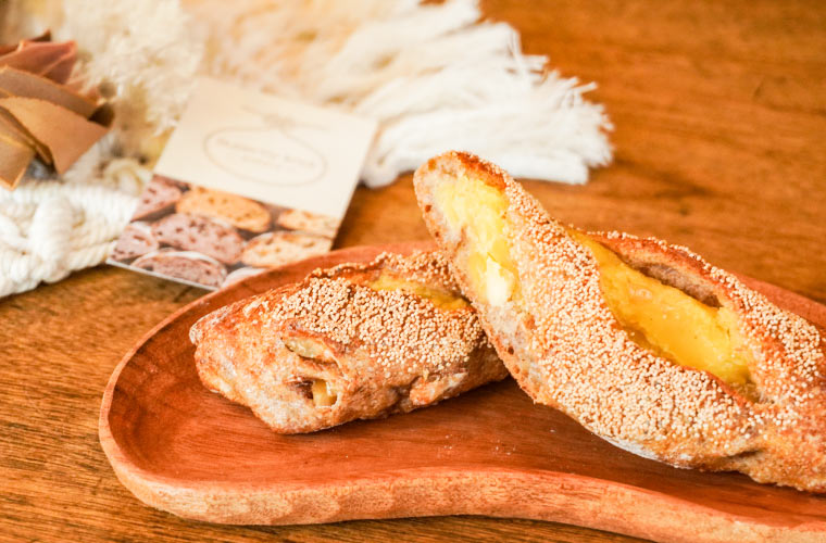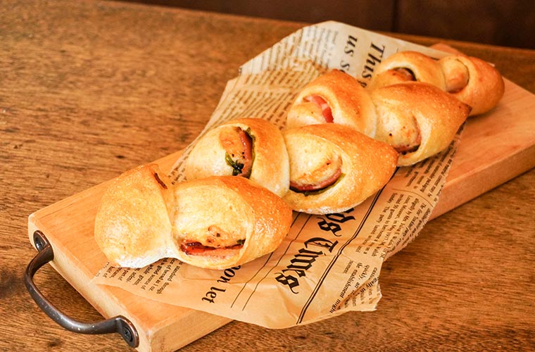 姉妹店でもエピは販売していますが、たつの市新宮町の精肉店「肉の山喜」の自家製ベーコンを使っているのは同店だけなので、是が非でもチェックしておきたいのがこの一品!焼き上げるときに生地の中からあふれる肉汁がパンに染み渡り、一口ごとに濃厚なうま味が感じられます。