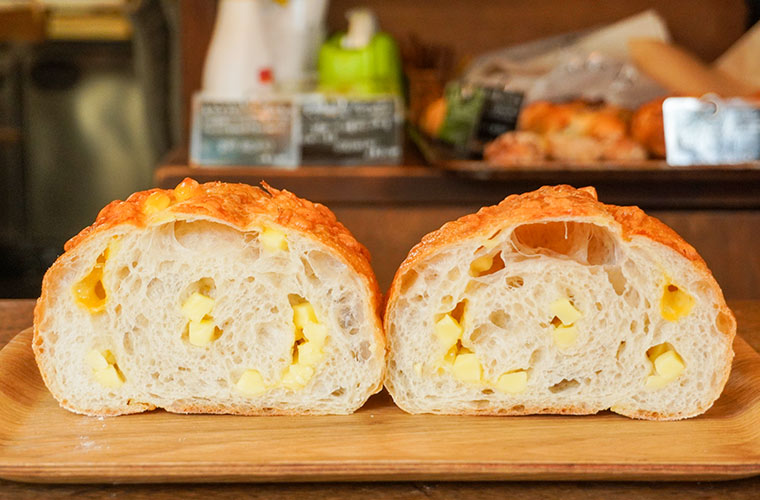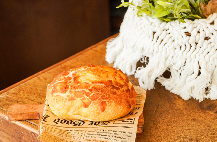 ゴーダとチェダーの角切りチーズをたっぷり混ぜ込んだ、ラグビーボール状の大きくてふかふかのパン。トップにもシュレッドチーズをトッピングしていて、合計で3種類のチーズを使用しています。どこを食べてもチーズがゴロゴロ入っていて、チーズ好きにはたまりません。パスタやサラダなど、食事のお供にもぴったりです。