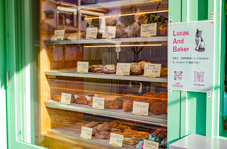 そして旧店舗から大きく変わったのが販売方式。以前は小さな店内に入ってパンを選ぶスタイルでしたが、リニューアル後はショーケースを店の外から見て注文し、横のカウンターで受け取れるようになりました。その気軽さから、散歩中の人やペット連れのお客さんも増えたんだとか。