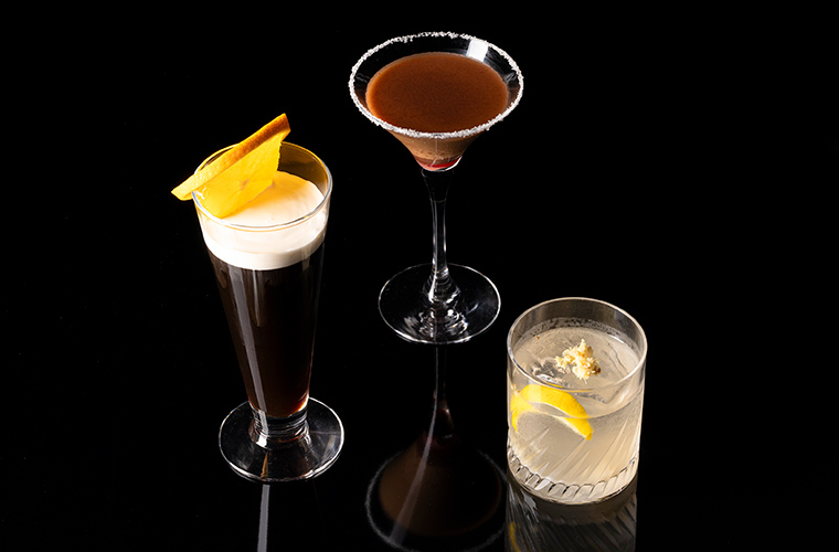 写真は左から時計回りに、冬の定番人気のホットカクテル『Café de neige』、チョコとアマレットの織りなすハーモニーが絶妙なカクテル『カカオアモーレ』(各1,700円)、日本酒を使い隠し味に白あんを加えることで、まろやかで奥行きのある味わいに仕上げた『冬音(ふゆね)』(1,800円)。冬だけの特別感あふれるラインアップから、心惹かれる一杯をぜひ見つけてみて。