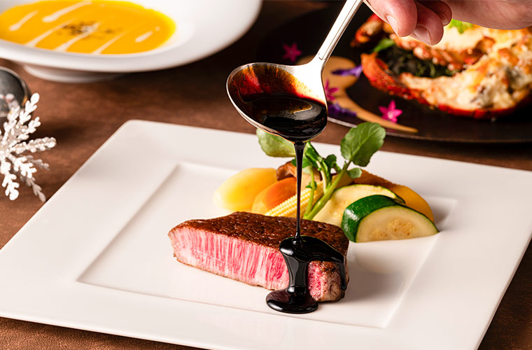 クリスマス限定コースは、黒毛和牛やイセエビのテルミドールに加え、グラスシャンパンも付いた華やかな内容。黒毛和牛は、舌の上でとろけるようなやわらかな食感と深いうま味が魅力。イセエビのテルミドールは、まろやかなホワイトソースとチーズをのせて香ばしく焼き上げた、フランス生まれの贅沢な一皿です。特別な夜にふさわしい上質なコースを、大切な人とゆったりと楽しんで。