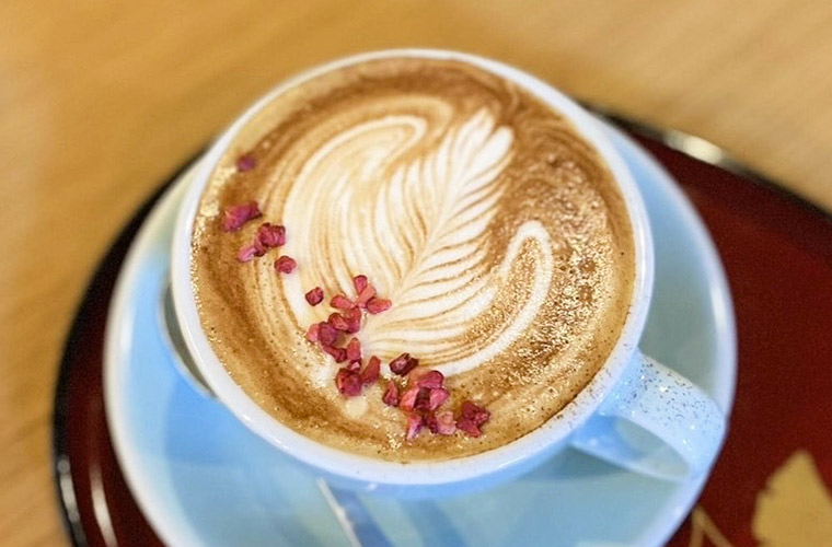 エスプレッソドリンクも人気。ラズベリーの風味がふんわり香る『ラズベリーショコララテ』は、ドライラズベリーで飾ったキュートなラテアートで提供されます。ラズベリーの心地よい酸味やチョコのほのかな苦味が感じられ、大人の女性にぴったりです。
