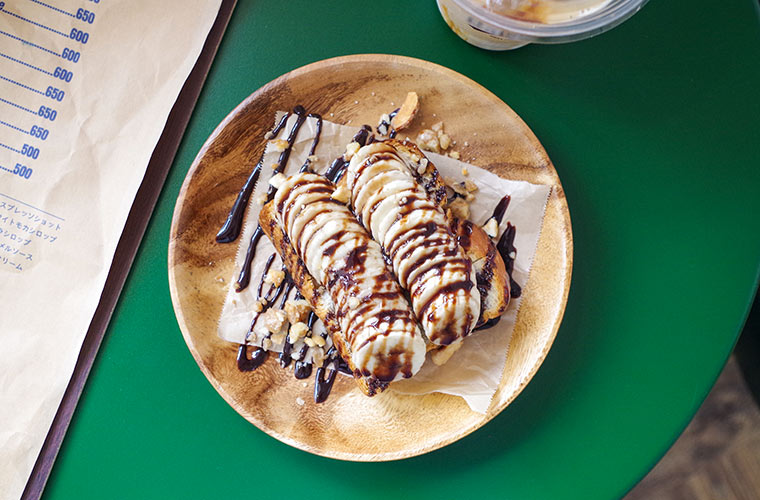 人気の『チョコバナナ』は、こんがりとトーストされたデニッシュの上に、贅沢にもバナナが丸ごと一本、さらにチョコレートソースやナッツなどがトッピングされた、見た目にも華やかな一品です。