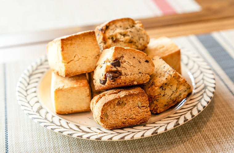 バターの風味が豊かな『スコーン』は、外はサクッと香ばしく、中はふんわりしっとり。冷めてもおいしく味わえるよう、生地作りにも一工夫されています。