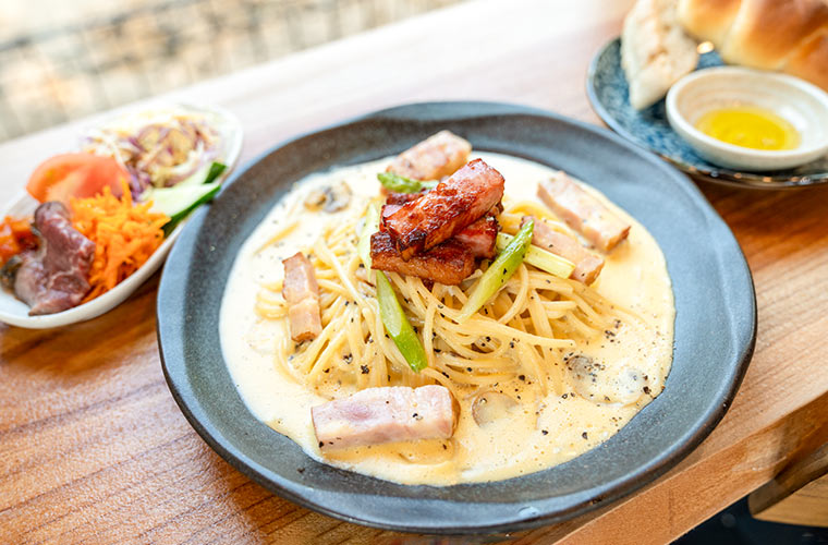 『カリカリベーコンのカルボナーラ(前菜・パンセット付き)』1,650円