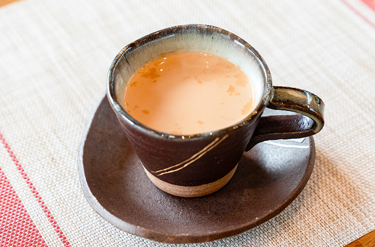 店主らがネパールに行った際にハマった『チャイ』。現地でさまざまな種類を飲んだ中で一番おいしいと思った茶葉を仕入れているのだとか。『ホットチャイ』は、濃厚で甘みが強く、香り高いのが特長です。