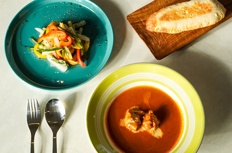 甘いのに辛い、その矛盾した味わいがクセになり、止まらなくなる“やみつきのバターチキンカレー”。実は、このカレー、水を一滴も使わず、代わりにトマト缶、バター、クリームをじっくりと煮込んでいるそう。手間と暇が生んだ深みのある味わいとまろやかさに、一口で心奪われること間違いなし!