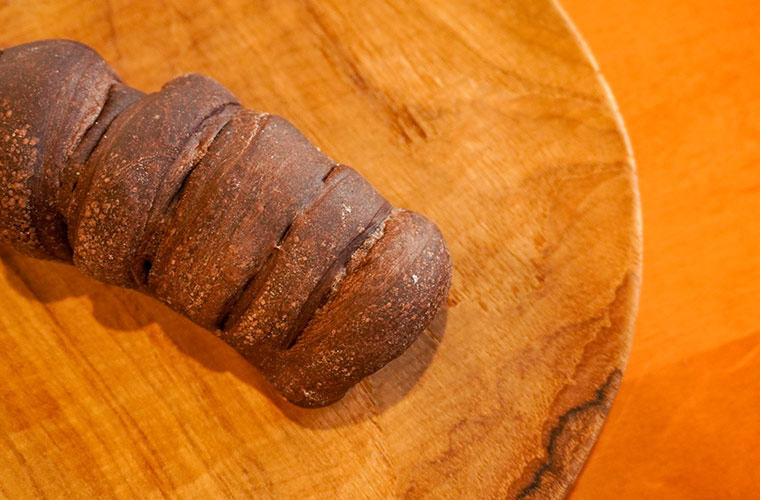 ココア生地にバトンショコラ(焼成用チョコレート)をたっぷり巻き込んで焼き上げた“チョコ尽くし”の一品。そのまま食べれば、しっかりとしたチョコの濃厚な味わいを、そして軽く温めれば、中からとろ~りとチョコが溶け出し、一つで二通りの楽しみ方ができます。過去にイベント出店した際にも、早々に完売したという人気ぶり。見かけたらぜひ即ゲットして!
