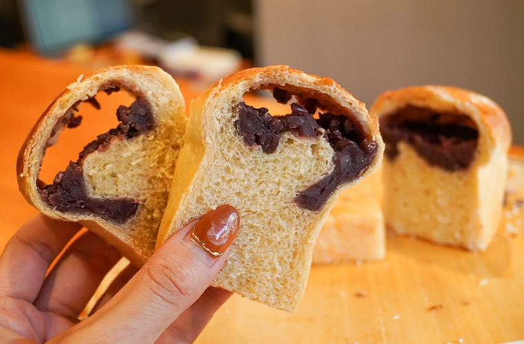 粒あんを巻き込んだミニ食パンは、味の想像はたやすいですが、一口食べれば、その想像を軽くこえるおいしさ。粒あんの優しい甘みとしっとりとした生地が見事に調和した、間違いのない組み合わせです。