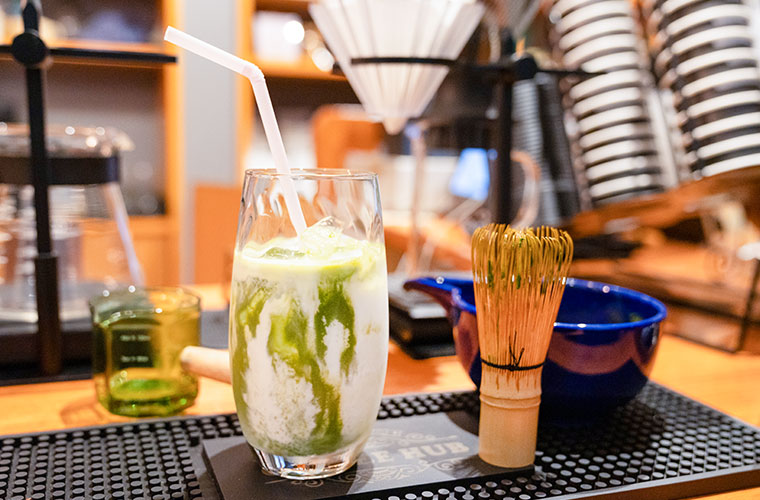 金曜日限定の人気メニュー『抹茶ラテ』。副店長が直接農家から仕入れる京都・宇治や、静岡・朝比奈の茶葉を使用し、純度100%の濃厚な抹茶の風味が楽しめます。コーヒーが苦手な人でも飲みやすく、品のある和の香りに。
