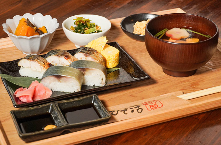 かつて宍粟市で“ひで活の鯖寿司”として親しまれてきたレシピを店主が受け継ぎ、長年イベント出店などで販売してきました。そのおいしさが人気を呼ぶなかで、「テイクアウトだけでなく、イートインでゆっくり味わってほしい」という思いが芽生えます。そして、縁とタイミングが重なり、この場所でのオープンが実現しました。