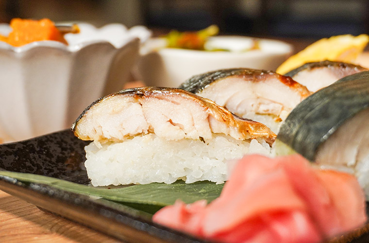 一方、ノルウェー産のサバをじっくり焼いた「焼きサバ寿司」は、ほどよく脂が落ちてあっさりとした味わいながら、後を引くうまさが魅力。サバと酢飯の間には刻んだ高菜が忍ばせてあり、サバの風味をいっそう引き立てています。ただ焼くだけではなく、酢で軽くしめてから焼くのも同店ならではのこだわり。こうすることで、ほど良い締まりと香ばしさが両立した、上品で食べやすい味わいにしているんだとか。