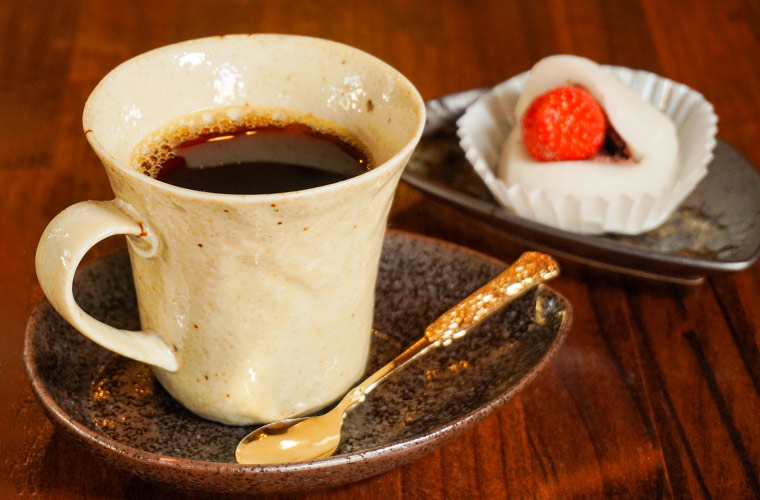 『自家焙煎コーヒー』550円、『フルーツ大福』300円 ※ランチセットなら各200円