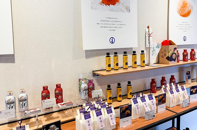 同店を運営するのは、うすくち醤油の魅力を発信する「うすくち文化研究所」。看板商品である白と赤の「無添加だし醤油」をはじめ、店頭には同社が手がける醤油を使った焼き菓子などがずらりと並び、購入することもできます。