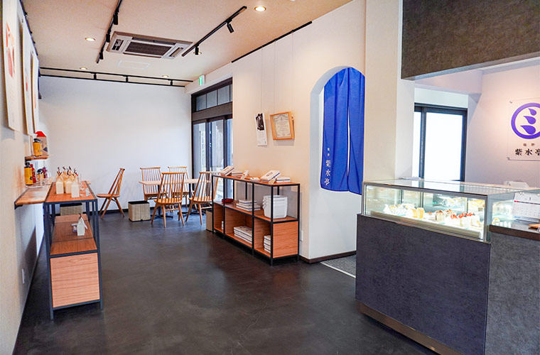 ショーケースには常時4~5種類のスイーツがラインアップ。イートインはもちろん、テイクアウトもできるので、ちょっとしたお持たせにもぴったりです。醤油が入っていると聞かなければ気付かないほど自然に溶け込み、いい意味で“醤油が隠し味”になった和スイーツがそろいます。