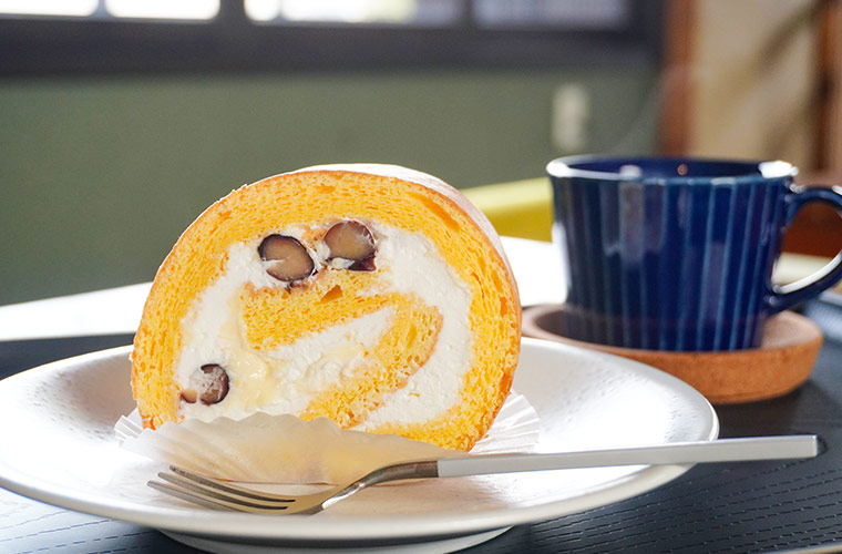 ふんわり、もっちりとしたスポンジ生地で、自家製カスタードと醤油がほんのり香るクリーム、さらに店炊きのこだわり黒豆を巻き込んだ「黒豆ロールケーキ」も、これから推していきたい定番人気。クリームとカスタードがあっさりとしているからこそ、黒豆そのものの甘みや風味が引き立ち、“黒豆が主役”の一品に仕上がっています。口に運ぶたびに食感も楽しく、ついパクパクと食べ進めてしまいそう。
