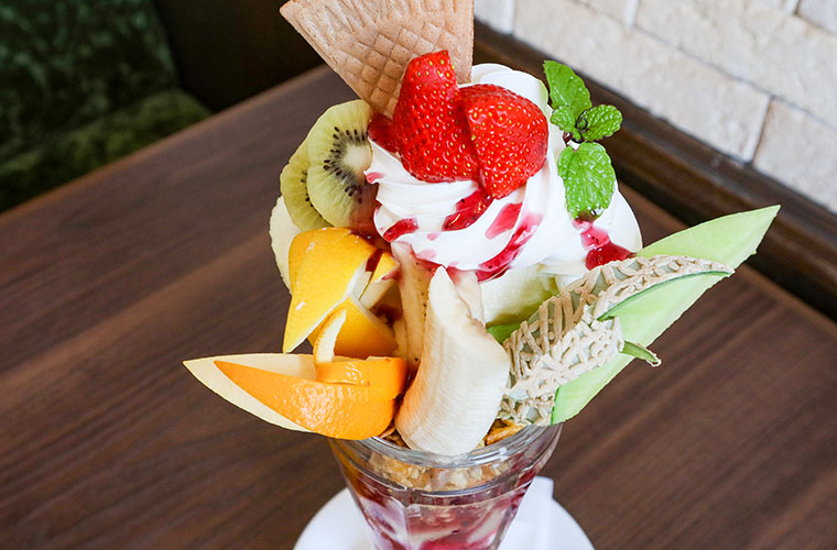 旬に合わせたフルーツをふんだんに使用した『フルーツパフェ』も贅沢な一品。