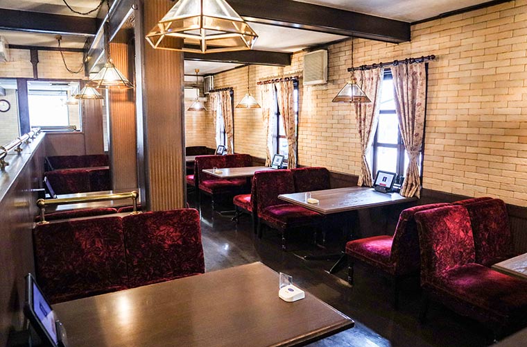 年数を重ねるごとに味が出るように、とイメージして作られた店内は、レトロな雰囲気が魅力。深紅のイスやレトロなカーテンなど、シックなインテリアに囲まれた落ち着いた空間が広がります。各席にコンセントも完備されていて、モーニングを楽しみながら仕事をする人もいるんだとか。