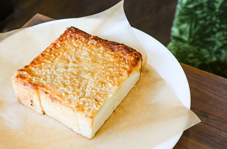取材時にチョイスした「アーモンドトースト」は、甘さ控えめでアーモンドの香ばしさが際立つ大人な味わい。食パンは姫路市網干にある創業40年超のパン屋「パリジャン」に、食感にこだわって特注したものを使用しています。アーモンドバターのサクッとジュワッとした口当たりと、食パンのふんわりもちっとした食感のコントラストはやみつき必至です。