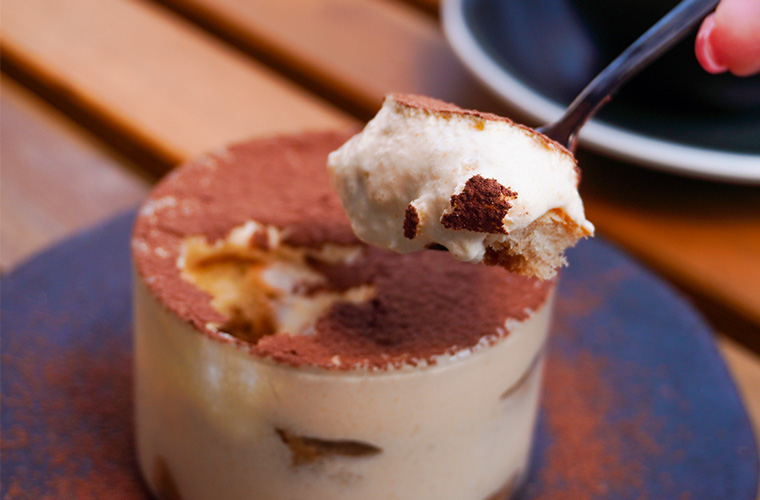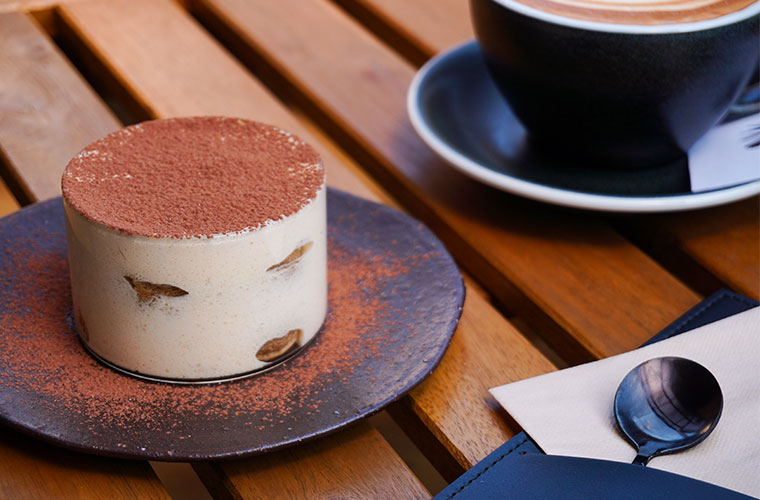 卵白と卵黄をそれぞれ分けて生地を作り、後でなど、手間暇かけて仕上げた『ティラミス』がお店のイチオシ。このひと手間があるからこそ、空気をたっぷり含んだふんわりと軽い食感と、とろけるような口溶けが生まれます。一度味わうとやみつきになる一品です。