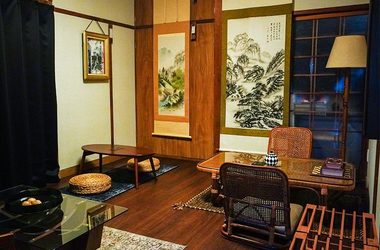 店の奥には、和の趣を感じる小上がり席もスタンバイ。掛け軸やちゃぶ台が置かれたジャパニーズスタイルのインテリアが広がり、また違った落ち着きのある雰囲気が漂います。足を伸ばしてゆったりくつろげるので、のんびり過ごしたい人はもちろん、赤ちゃん連れにもおすすめの空間です。