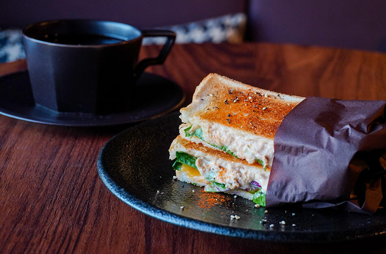 コーヒーと相性抜群のホットサンドもおすすめ。『ツナメルトサンド』と『ハム&チーズサンド』の2種類がラインアップしています。どちらも注文が入ってから作るため、出来たての熱々を味わえるのがうれしいポイント。