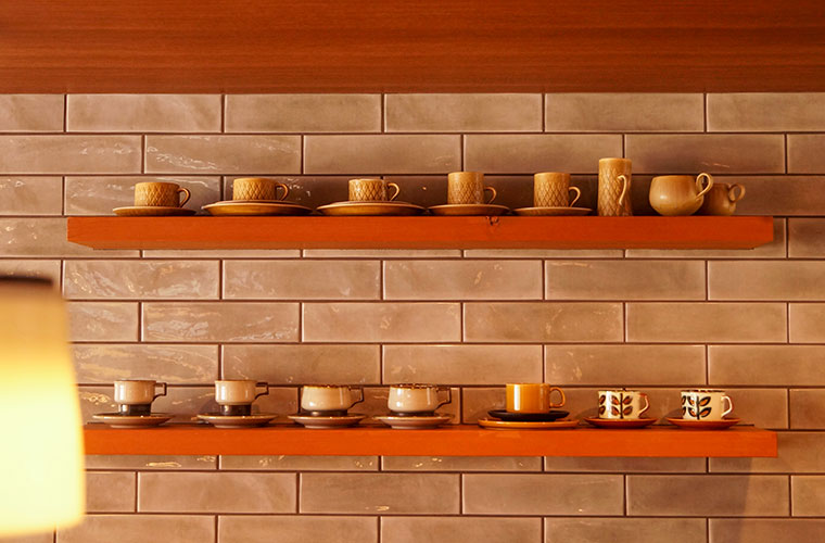 北欧のインテリアが好きだという店主。壁の棚には、店主がコレクションしてきた北欧食器がずらりと並びます。個性豊かなカップを眺めているだけでも思わずうっとり♪