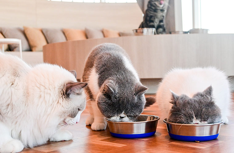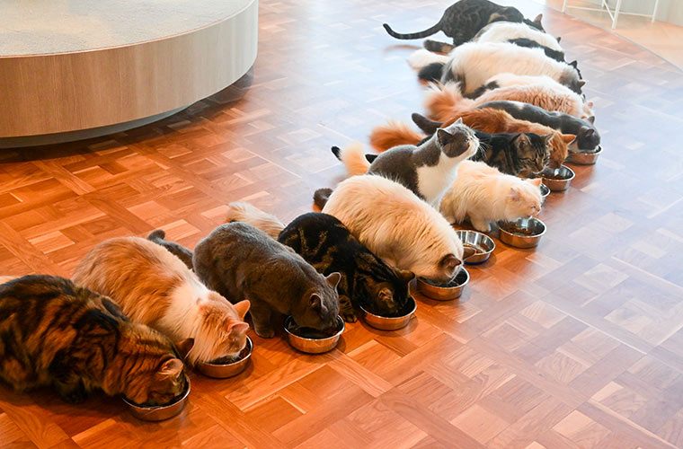 シャッターチャンスを狙うなら、1日2回のごはんタイムがおすすめ。毎日11:00と19:00には、猫ちゃんが整列してごはんを食べる、なんとも愛らしい光景が広がります。食事前からソワソワと集まり始める姿も、思わず見入ってしまうかわいさです。