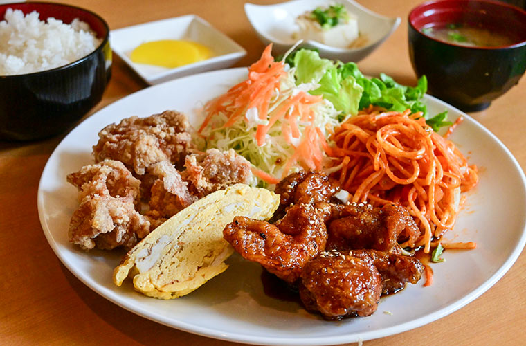 2種のチキンが楽しめる『スペシャルチキン定食』もおすすめ。1日かけてしっかり下味を付けた竜田揚げと、甘辛いテリヤキソースを絡めたチキンが味わえる、満足感たっぷりの一品です。竜田揚げは注文を受けてから揚げるため、アツアツでサクサク!脇役のだし巻き卵も文句なしのおいしさで、サイドに至るまで丁寧に仕上げられているのが伝わってきます。
