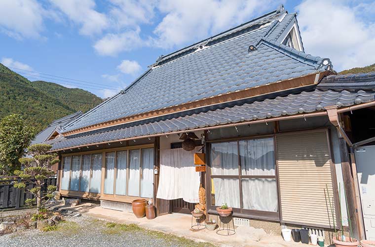 中国自動車道滝野社ICから車で約40分。緑が深い多可町加美区の山あいの道を進むと現れる「古民家カフェ ゆいたば」。玄関にかかる白い暖簾をくぐると、どこか懐かしさを感じる趣ある空間が広がります。