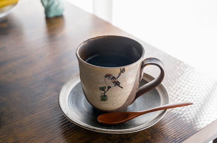 店主自ら厳選した豆で淹(い)れる『コーヒー』。深煎(い)りのマンデリンは、香り・酸味・甘みのバランスがよく、落ち着いた味わいが特徴です。ほっと一息つきたいときに寄り添ってくれる一杯。スイーツとの相性も良く、ゆったりとした時間を過ごすお供にぴったり♪