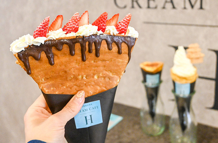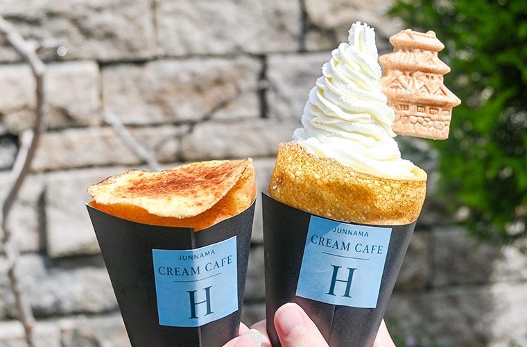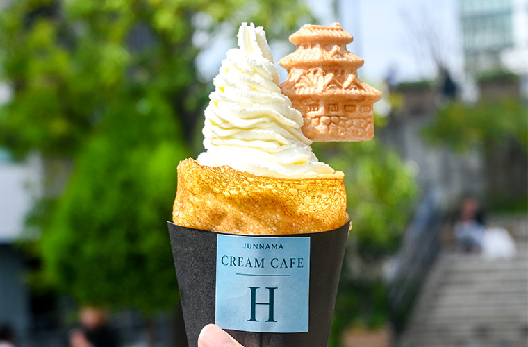 素材にこだわった純生クリームと、焼き方で変わる2種類の生地が楽しめる「純生 Cream Cafe H」。気分に合わせて“もちもち”と“パリパリ”を食べ比べられるクレープのほか、ソフトクリームなどの食べ歩きスイーツも充実しています。同店のスイーツは店内で食べるもよし、それを片手に姫路駅周辺を散策するもよし。思い思いのスタイルで味わってみては?