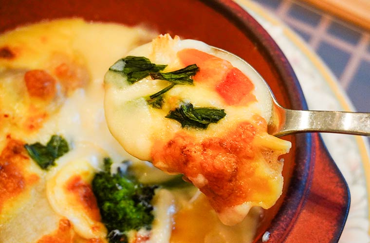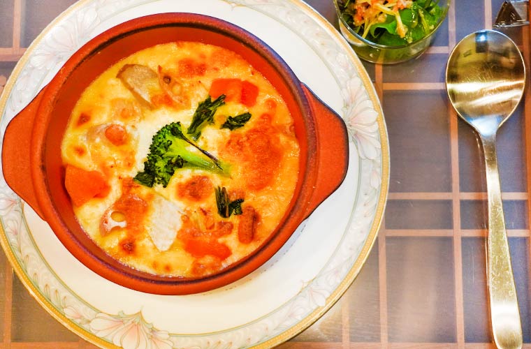 白味噌の風味と上品な甘みに、豆乳のまろやかさが合わさったホワイトソースは、あっさりとした味わいで、何口でも食べたくなるおいしさ。素朴な味わいだからこそ、素材の味が際立ち、一つひとつの野菜のうま味がより豊かに感じられます。