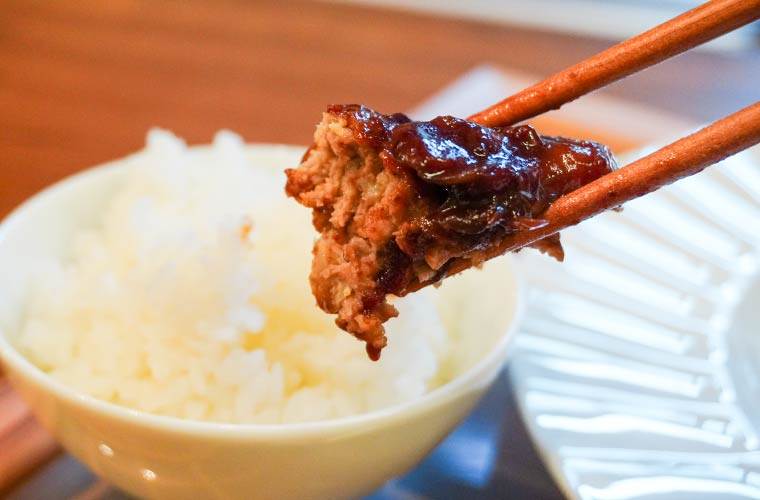 11~12月のメイン料理は「オリジナル煮込みハンバーグ」。豚肉100%で作られているため脂があっさりとしていてくどさがなく、後味も軽やかです。一方、惜しみなくかけられたデミグラスソースは濃厚そのもので、「井戸糀(こうじ)店」の甘酒と味噌が深みを生み出す決め手に。ほどよく甘くフルーティーな味わいが肉のうま味を一層引き立て、ご飯が進むおいしさへと導いています。