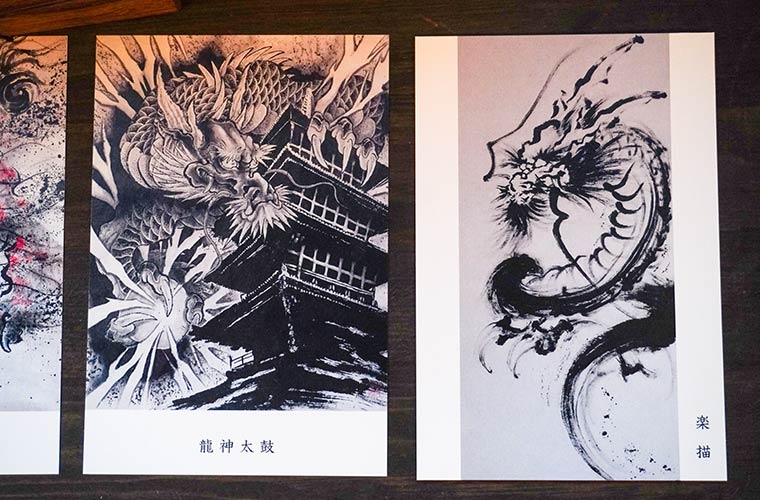 三人目となる「RYOTARO」は、墨のみで描く墨絵アートのポスターや絵画を手がけるアーティスト。龍や神宮といった力強く神秘的なモチーフを題材に、墨ならではの濃淡や筆致を巧みに操り、迫力と静けさが同居する独自の世界観を表現しています。店内に並ぶ作品は、思わず足を止めて見入ってしまうほどの存在感。和の美を現代的に昇華した、魅力あふれるアートです。