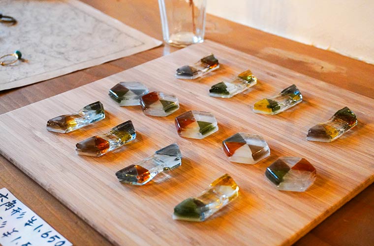 二人目は、神戸を拠点にイベント出店や展示会を行う「ふじわら工房」。真鍮と光が織りなすアート作品をはじめ、ガラスを使った繊細な小物など、思わず目を奪われる“きらめき”を秘めたアイテムが並びます。空間にそっと輝きを添えてくれる作品に、胸をときめかせて♪