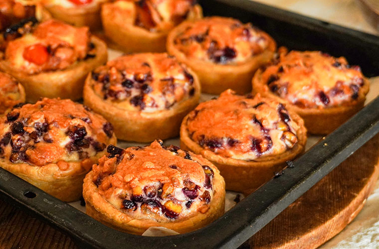 土・日曜日に並ぶことの多い『キッシュ』は、週末のお楽しみとしてファンの多い一品。この日は「チキンの照り焼きとプチトマトのキッシュ」と「赤いトウモロコシのキッシュ」が登場しました。小野市産の平飼い卵や生クリームに加え、クリームチーズやニンニクを使うのが“なずな食堂流”。一番底に敷かれた炒めタマネギの甘みが全体を優しくまとめ、おいしさのカギを握ります。