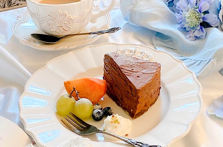 シーズンごとに季節限定のスイーツも登場するので、スイーツ好きは要チェック。11~2月の冬季には毎年、ねっとり濃厚な『生チョコのケーキ』がお目見えします。舌の上はもちろん、室温に置いているだけでも溶けてしまいそうなほど濃厚で、まさに“生チョコ”の名にふさわしい味わいです。