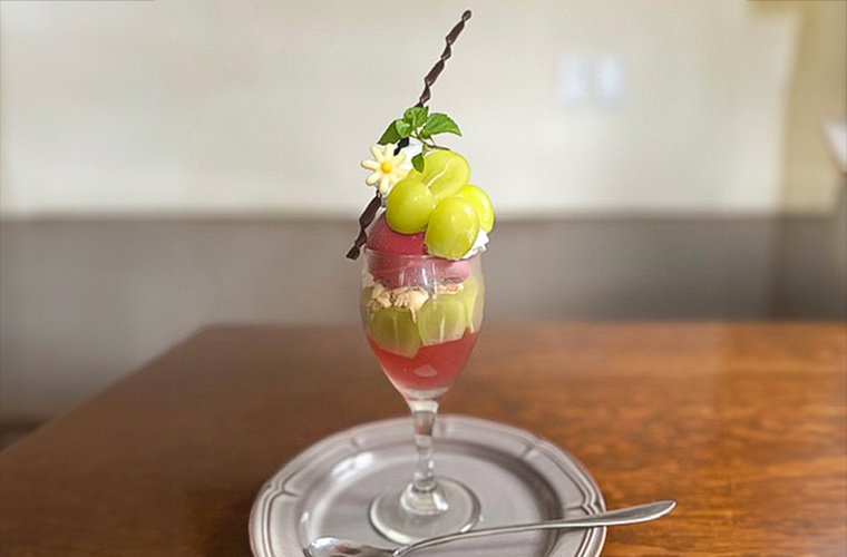 秋らしく、さっぱりとしたスイーツを味わいたいなら『葡萄のパフェ』はいかが?みずみずしいブドウのトッピングの下には、鮮やかなカシスアイスが。グラスの中には生クリームとカスタードも重なり、スッキリとした“果実感”と甘さのマリアージュを楽しめます。ザクザクとしたアーモンドクロッカンやグラノーラが食感のアクセントに。最後は爽やかなブドウゼリーで締めくくりを。