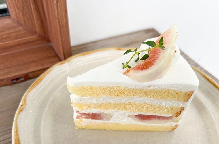 無農薬で栽培された丹波大納言小豆のあんこで作るスイーツが自慢の「暦(こよみ) あずきとおかしと。」の秋スイーツは、イチジクの産地である小野市のイチジクを使用したショートケーキ。甘さ控えめの生クリームに口当たり軽やかなスポンジ、そしてフレッシュなイチジクをプラスした滋味深くもあっさりとした味わいが魅力です。