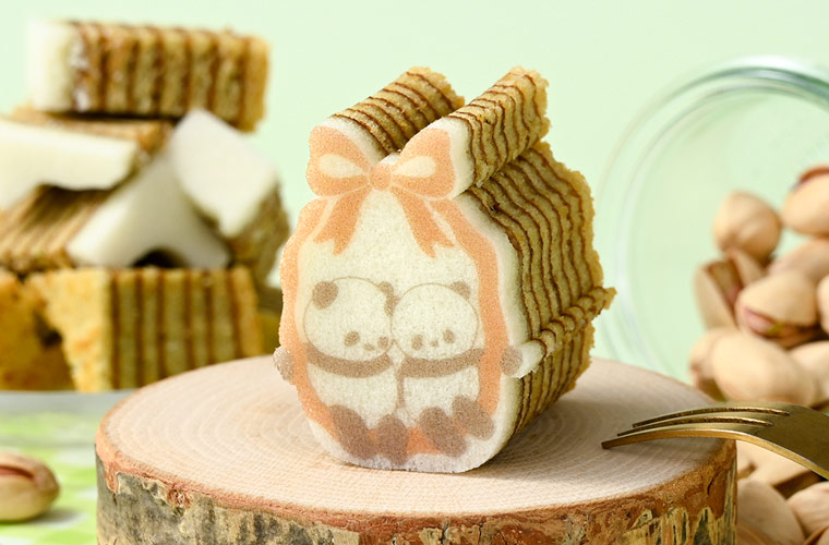 今回はホワイトデーのギフトにはもちろん、出会いと別れの季節にぴったりな限定商品を販売。リボンのブランコにゆられる『リボンパンダバウム』は、香ばしい風味とナッツのコクが広がるピスタチオ味。思いを込めたハートを抱えた『Thank youパンダ』は、芳醇な香りと優しい甘みが広がるはちみつ味♪