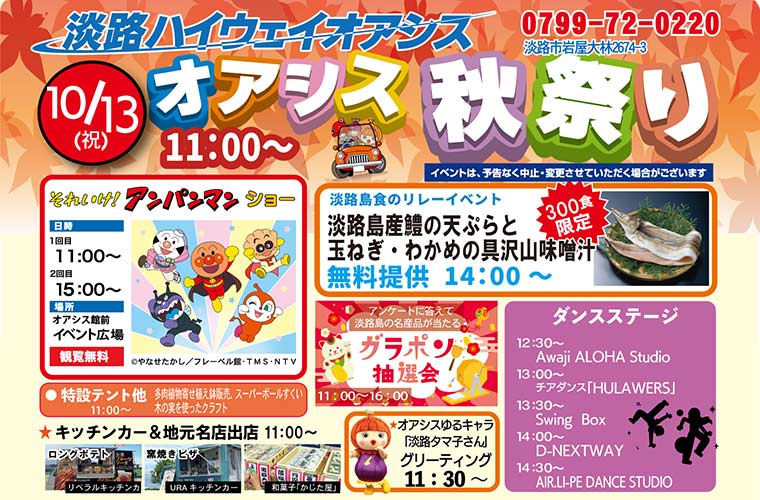 明石海峡大橋渡ってスグの淡路ハイウェイオアシスで「オアシス秋祭り」開催!家族でGO!
