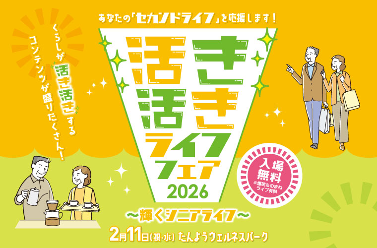 2月11日(水・祝)、加古川の「たんようウェルネスパーク」で、シニア世代の第二の人生を応援するイベント「活き活きライフフェア 2026」が開催されます。地元企業による「企業ブース」や暮らしに役立つ情報が学べる「セミナー」など、定年後や老後を豊かに暮らすためのヒントを得られるコンテンツが盛りだくさんです♪