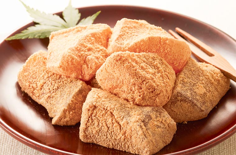日本の春夏秋冬を和菓子を通して感じてもらいたいという思いのもと、四季折々の食材を使用し、丁寧に作り上げる和菓子を多数展開。中でも『庄わらび餅』は徳島県の名糖「阿波和三盆糖」を使用し、長時間炊き上げて作り上げる名物商品で、もちもち食感と上品な甘さがやみつきに♪きな粉は砂糖を使用していないので、大豆本来の風味が口いっぱいに広がるのを感じて。
