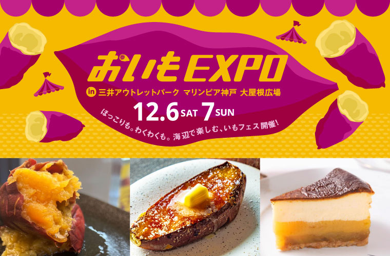 さらに、12月6日(土)・7日(日)の2日間は「おいもEXPO in 三井アウトレットパーク マリンピア神戸」を開催!全国各地で人気の約10店舗が出店し、秋の味覚サツマイモをたらふく味わえるスイーツやグルメが勢ぞろいします。みんなでシェアしながら食べ比べるのも楽しそうですね♪