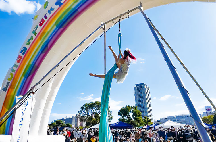ショッピング以外にもお楽しみが満載♪迫力満点の特設ステージでは、お面が瞬時に変わる変面師やまちさんの「変面ショー」、大道芸人・ひろとさんらが繰り広げるパフォーマンスに注目!布を使った華麗な空中芸「エアリアル」をはじめとした、ハラハラドキドキの「スマイルサーカス」からも目が離せません。ダイナミックな技の数々を間近で見られるのがうれしいですね。チアダンスやキッズダンスチームによる、熱いステージも盛り上がること間違いなしです。