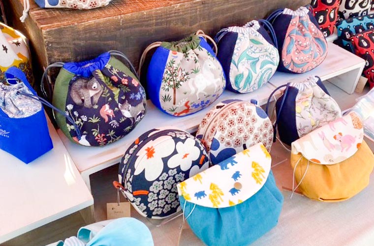 布小物やアクセサリー、インテリア雑貨など、ハンドメイド作家がこだわり抜いたデザインや作品と共に、多種多様なお店がずらりと並びます。テイクアウトができる移動販売車や飲食ブースもあるので、小腹を満たすのにもぴったり!