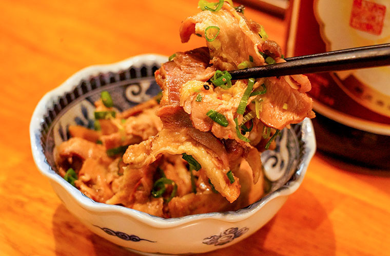 “ひねぽん発祥の店”と言われる「やき鳥 きむら」のひねぽんは、自家製ポン酢に一晩以上漬け込み、ユズと七味の風味を利かせた一品。母から娘へと受け継がれ、60年以上愛されている秘伝の味です。